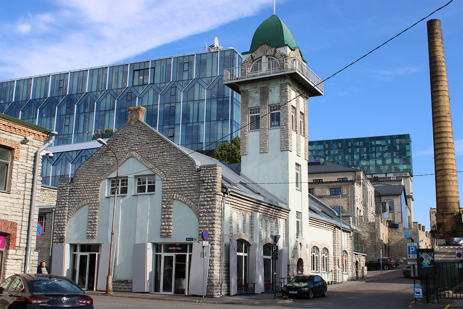 It’s an industrial area which is still very much up and coming. The rest of the paper factory is currently being redeveloped as offices and leisure hub. Estoniaโs biggest distillery is located just across the road from us. We are a three-minute walk away from the Tallinn bus station and five-minute drive from the airport.